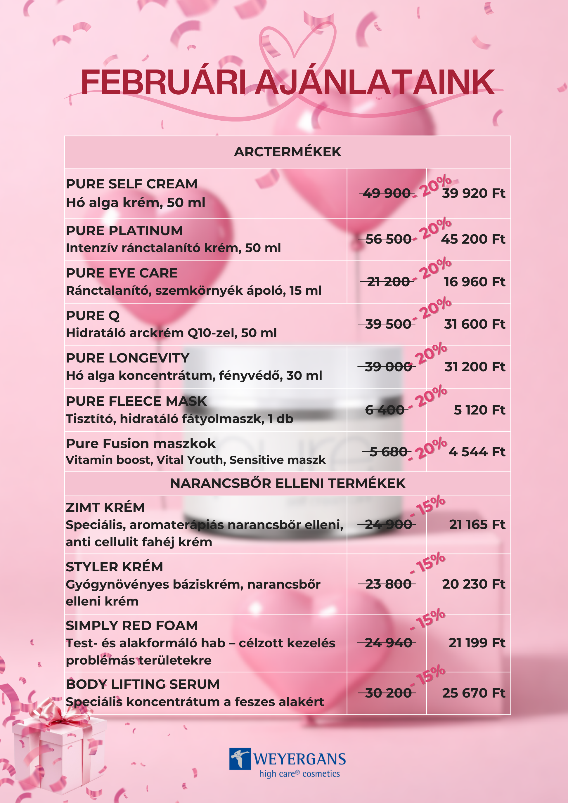 - A PURE termékcsaládot 20 %-os és egyes narancsbőr elleni készítményeket 15 %-os kedvezménnyel vásárolhatod meg üzletünkben.